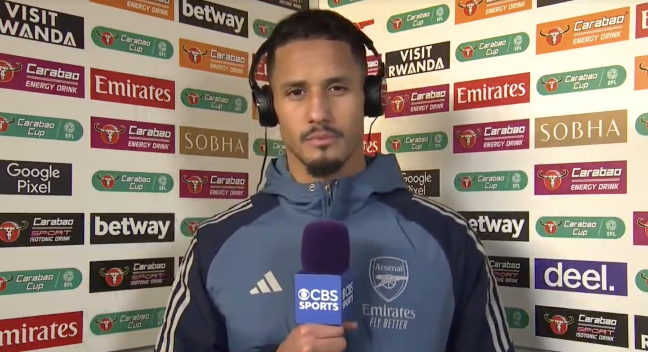 英联杯1/4决赛,阿森纳通过点球大战淘汰水晶宫,赛后,阿森纳后卫萨利巴接受了CBS体育的采访。